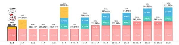 | 13~17ヶ月 | ¥335,040 | 2年目¥5,069,680 |